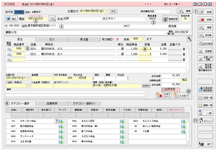 初めてのお客様は顧客番号Bに「新規」の文字が出ます。
